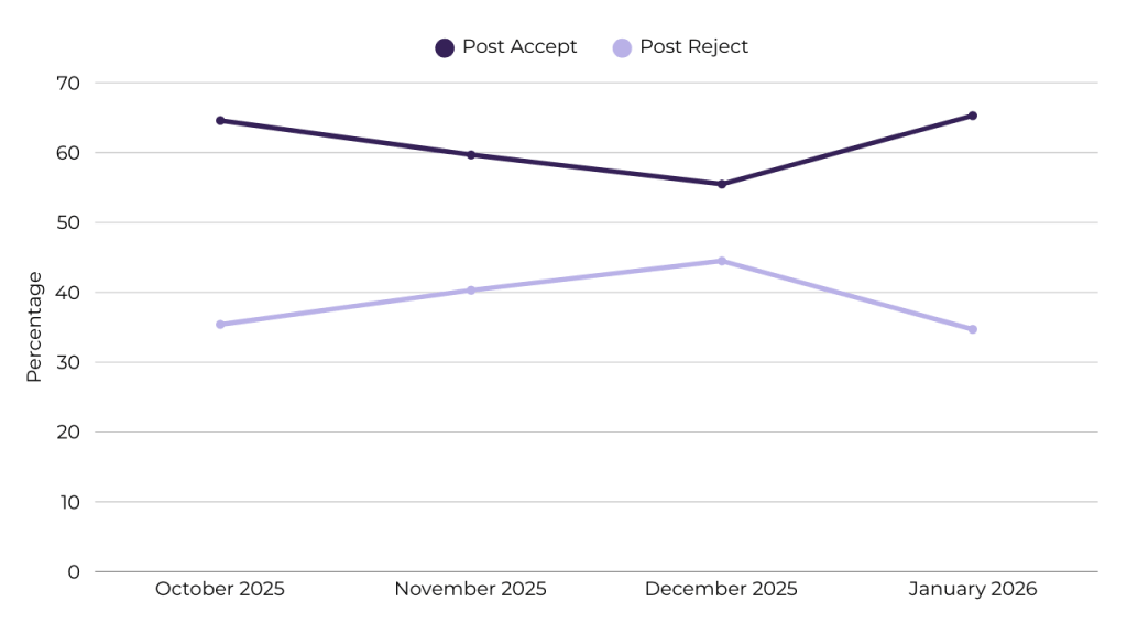In contractor lead generation, a post-reject happens when a lead is sent through a compliance and filtering system but is later rejected, often because it is considered a duplicate or does not meet certain criteria.