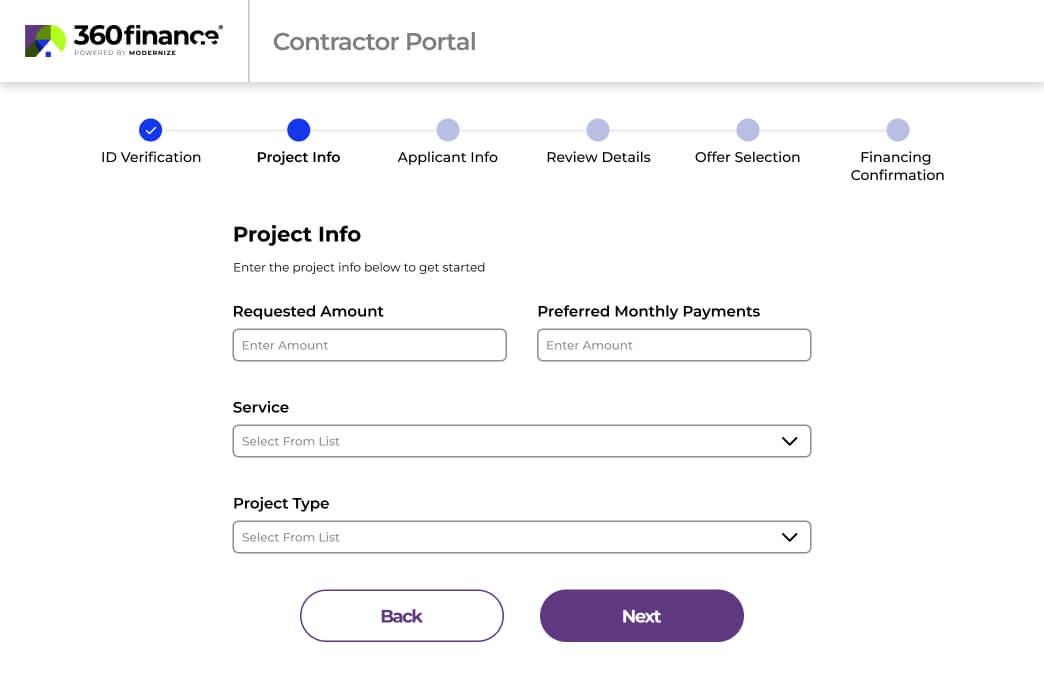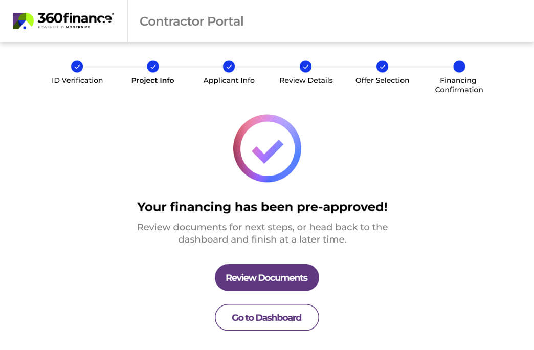 Log into the 360Finance contractor portal from any device and start a financing application as soon as the customer is ready.